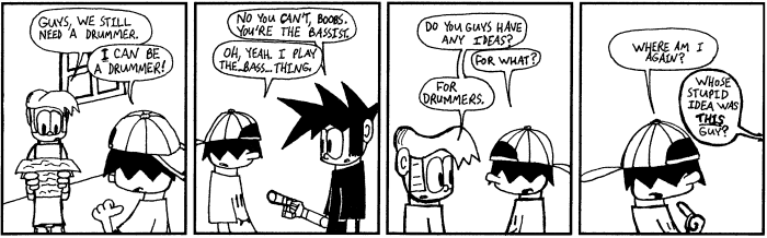Most importantly, I can't honestly say all of this is good. Such is the catch 22 of webcomics — the pool may be a hundred kilometres wide, but it's only a few millimetres deep. It was a wonderful learning experience, especially in the early-ish days before webcomics really took hold, and I hope you had as much fun back then as I did. After all, it's a good thing it was fun then, because these strips sure are embarassing to look back on now.