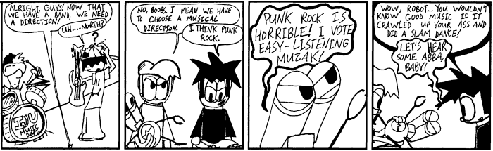 Inside Joke was my poorly-named and poorly-executed first attempt at a comic strip, which I started publishing on the internet long before it was ready. I jumped from Tripod to Geocities, and was never never happy with either free host. Then Keenspace came along, and Inside Joke moved there.
