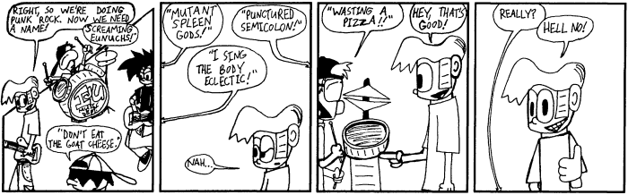 Most importantly, I can't honestly say all of this is good. Such is the catch 22 of webcomics — the pool may be a hundred kilometres wide, but it's only a few millimetres deep. It was a wonderful learning experience, especially in the early-ish days before webcomics really took hold, and I hope you had as much fun back then as I did. After all, it's a good thing it was fun then, because these strips sure are embarassing to look back on now.