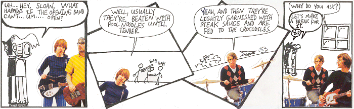 Most importantly, I can't honestly say all of this is good. Such is the catch 22 of webcomics — the pool may be a hundred kilometres wide, but it's only a few millimetres deep. It was a wonderful learning experience, especially in the early-ish days before webcomics really took hold, and I hope you had as much fun back then as I did. After all, it's a good thing it was fun then, because these strips sure are embarassing to look back on now.
