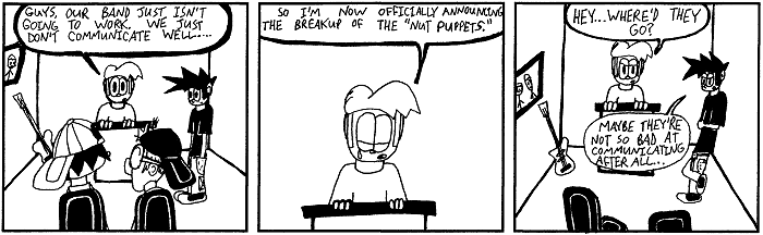 Inside Joke was my poorly-named and poorly-executed first attempt at a comic strip, which I started publishing on the internet long before it was ready. I jumped from Tripod to Geocities, and was never never happy with either free host. Then Keenspace came along, and Inside Joke moved there.