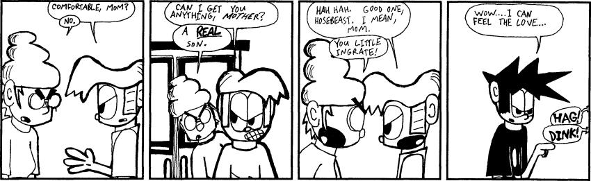 Inside Joke was my poorly-named and poorly-executed first attempt at a comic strip, which I started publishing on the internet long before it was ready. I jumped from Tripod to Geocities, and was never never happy with either free host. Then Keenspace came along, and Inside Joke moved there.
