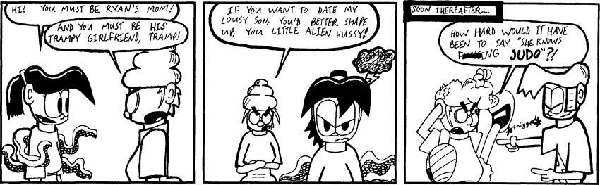 Inside Joke was my poorly-named and poorly-executed first attempt at a comic strip, which I started publishing on the internet long before it was ready. I jumped from Tripod to Geocities, and was never never happy with either free host. Then Keenspace came along, and Inside Joke moved there.