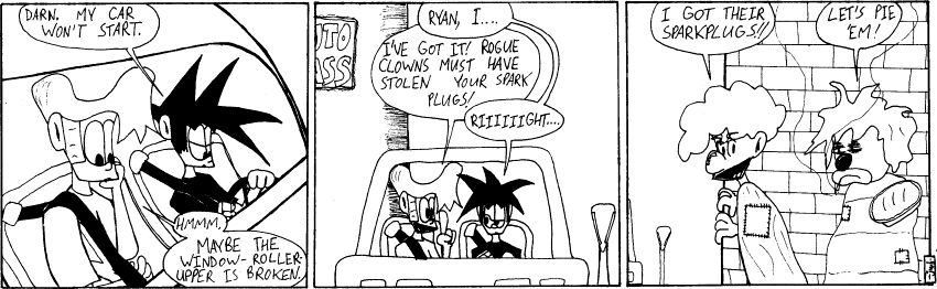 Most importantly, I can't honestly say all of this is good. Such is the catch 22 of webcomics — the pool may be a hundred kilometres wide, but it's only a few millimetres deep. It was a wonderful learning experience, especially in the early-ish days before webcomics really took hold, and I hope you had as much fun back then as I did. After all, it's a good thing it was fun then, because these strips sure are embarassing to look back on now.