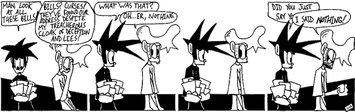 Most importantly, I can't honestly say all of this is good. Such is the catch 22 of webcomics — the pool may be a hundred kilometres wide, but it's only a few millimetres deep. It was a wonderful learning experience, especially in the early-ish days before webcomics really took hold, and I hope you had as much fun back then as I did. After all, it's a good thing it was fun then, because these strips sure are embarassing to look back on now.