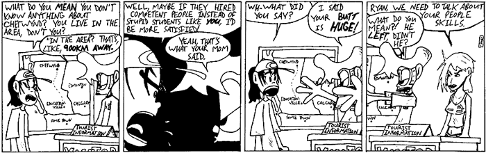 Inside Joke was my poorly-named and poorly-executed first attempt at a comic strip, which I started publishing on the internet long before it was ready. I jumped from Tripod to Geocities, and was never never happy with either free host. Then Keenspace came along, and Inside Joke moved there.