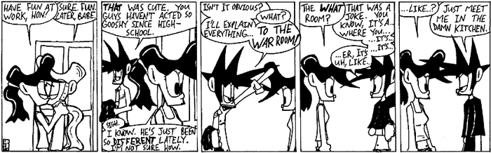 Inside Joke was my poorly-named and poorly-executed first attempt at a comic strip, which I started publishing on the internet long before it was ready. I jumped from Tripod to Geocities, and was never never happy with either free host. Then Keenspace came along, and Inside Joke moved there.